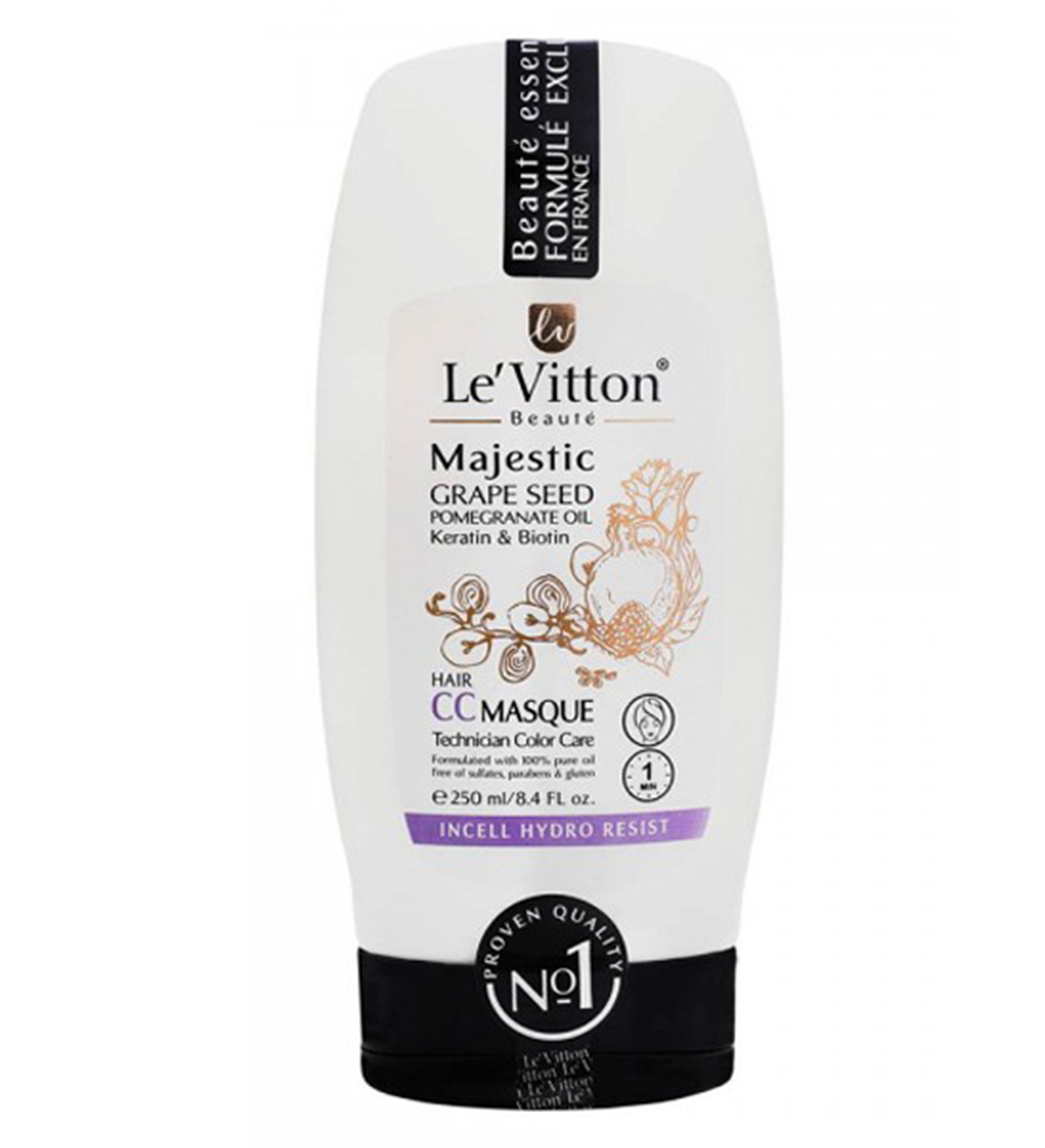 ماسک مو انار و انگور CC یکی از محصولات برند لویتون است که برای انواع مو اعم از خشک، آسیب‌دیده، مجعد، رنگ‌شده و عادی مناسب است. این محصول یک ماسک ترمیمی و مغذی است که به تقویت موها کمک کرده و میزان شکستگی آن‌ها را کاهش می‌دهد. با استفاده از این ماسک مو خشکی و گره‌های سخت مو از بین خواهد رفت، زیرا ابن ماسک به حفظ آب درون سلولی کمک می‌کند. این محصول از موهای شما دربرابر اشعه ماورای بنفش، آلودگی‌ها، و حرارت سشوار محافظت می‌کند؛ بنابراین به موهای شما سلامتی و شادابی می‌بخشد.